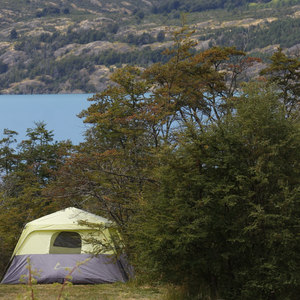 Debes prepararte para acampar. Nosotros proveeremos una amplia carpa con un cómodo colchón sobre pallets para ti, tú sólo debes traer tu saco de dormir. Contamos con baños secos y duchas con agua caliente, todo a pocos metros de la orilla del lago.