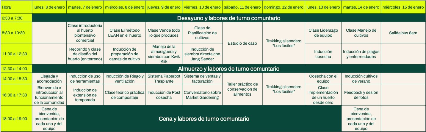 Una experiencia de un mes en el mundo del market gardening, donde además de recibir una base teórica y técnica en la producción de hortalizas, estarás expuesto al trabajo diario donde tenemos ritmos necesarios para que esto funcione.